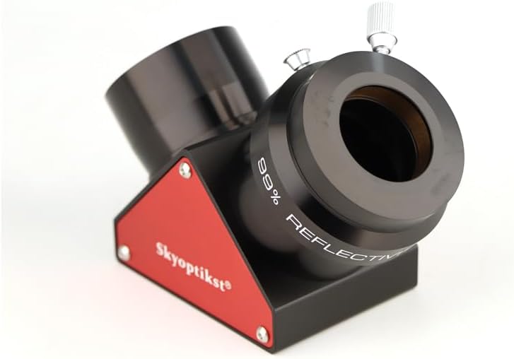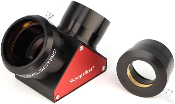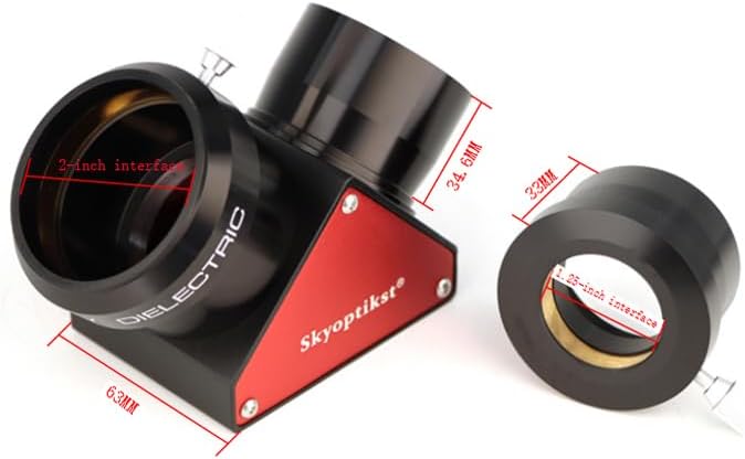 SKYOPTIKST 2-inch 90 degree metal high reflectivity zenith mirror high reflectivity dielectric film/99% reflectivity/with 2-inch 1.25 inch adapterName: 2-inch 90 degree metal high reflectivity zenith mirrorMaterial: Metal shell/adapter/sleeve sleeve with scratch resistant eyepiece fixing copper ring insidePurpose: Used for imaging with refracting/reflecting telescopesCoating+Internal: High reflectivity dielectric film/Internal extinction 99% reflectivityInterface: 2-inch interface (with 1.25-inch adapter). The sleeve has threads inside and can accommodate 2-inch M48 filtersWeight: Net weight 405 gramsTotal weight with box: 810 gramsSize: Zenith Mirror Size: Approximately 140X63X94MMPackaging size: 210X170X100MM